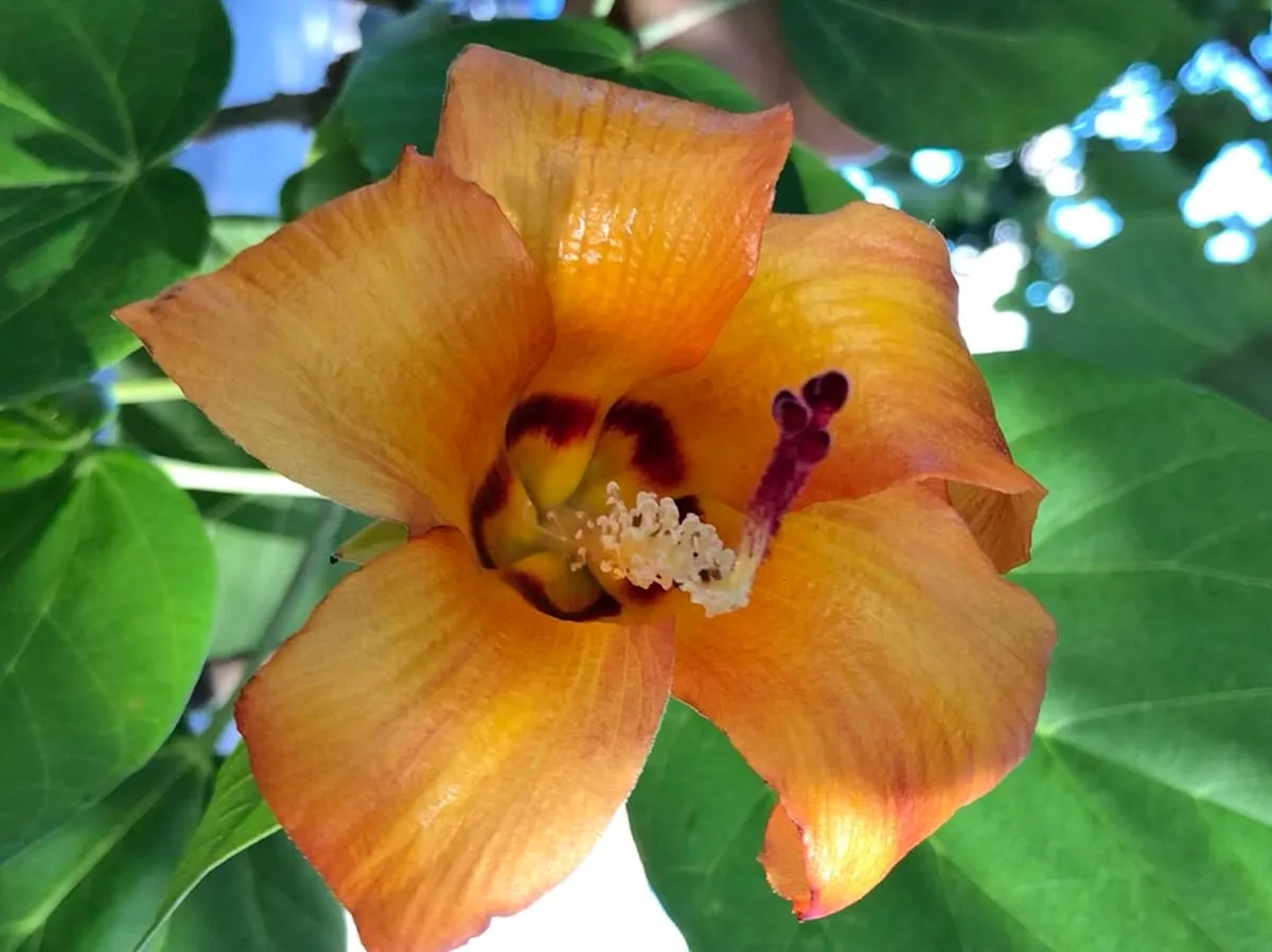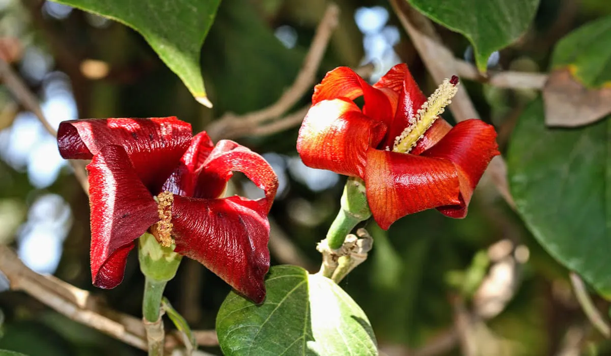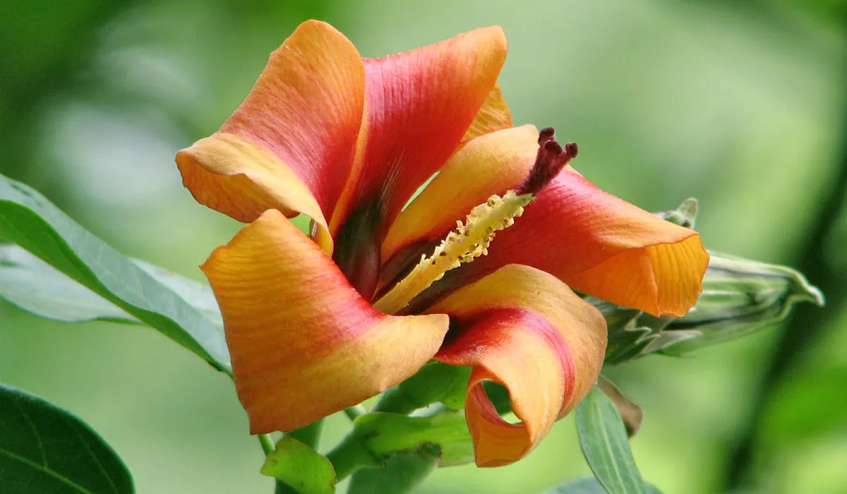 Les fleurs ressemblent beaucoup à l'hibiscus changent de couleur quand elles arrivent à maturité, elles passent de jaune à orange et finalement rouge à pourpre. Les pétales mesurent entre 10 et 15 cm.